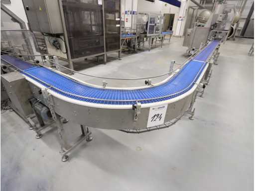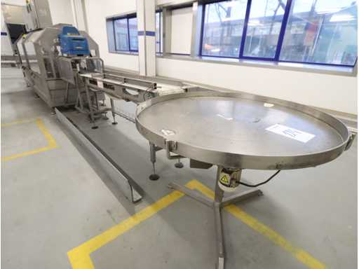 Bestaande uit: dozen opzet unit met bufferstation, opgebouwd voor dozen afmeting 194x126x32, met digitale uitlezing, transportband (lengte 4500 mm), schakelband bocht, dozensluitmachine met “Nordson” hotmelt unit, type problue 4, uitvoer schakel transportband en buffertafel