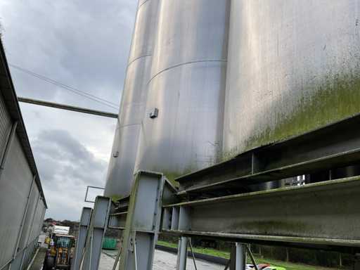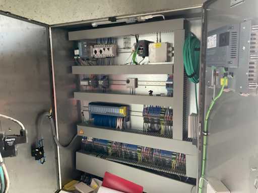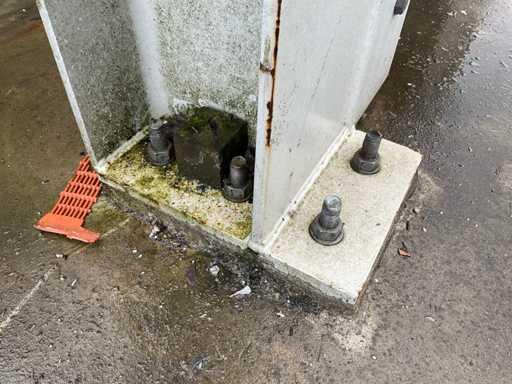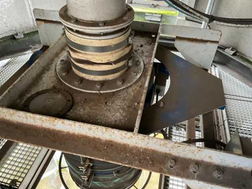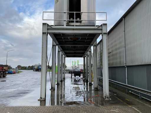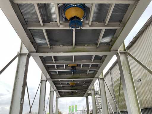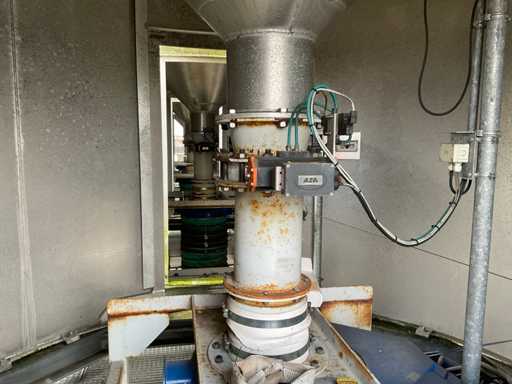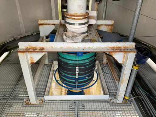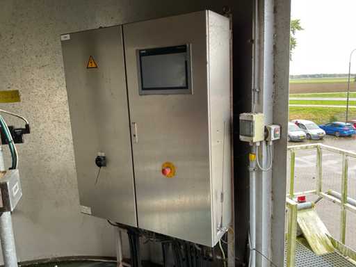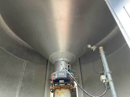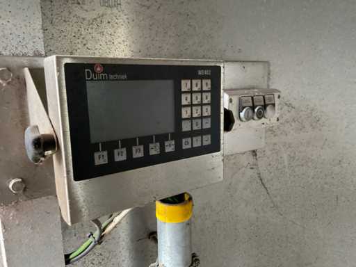 Betreft stalen frame met 4x aluminium silo, opstelling is gebruikt voor opslag van kunststof granulaat, elektrische aansluiting in hoofdmeterkast wordt door verkoper gedemonteerd. Elke silo is voorzien van 4 weegcellen en monitor, elektronische afsluiter, neerlaatbare flexibele vultrechter, condens filter per silo aan bovenzijde, leegmelding sensor in trechter. doorrijdhoogte 4100mm, doorrijdbreedte 3700mm, totaalafmetingen zijn zonder trapwerk, plc en software niet meer aanwezig, enkel getoonde hardware. leidingwerk van silo’s naar pand na de 90 graden bocht is niet inbegrepen, dit is enkel in overleg en tegen meerprijs te verkrijgen!