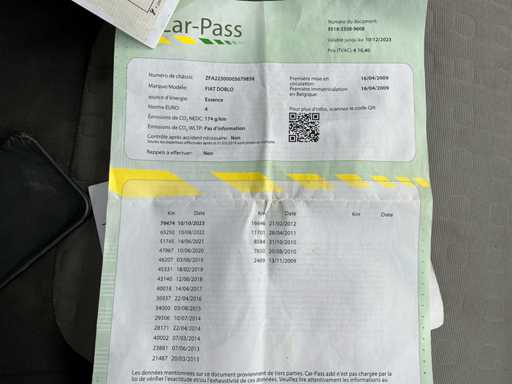 Fiat Doblo uit 2009 met slechts 100415 kilometers op de teller. Start, rijdt en remt. Oppervlakkige lakschade.