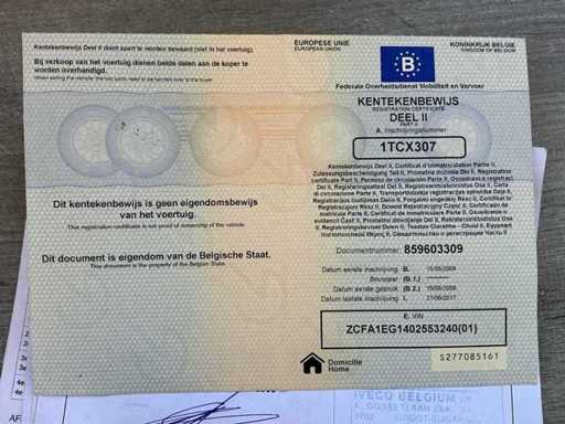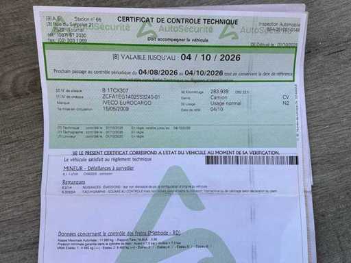 Het voertuig beschikt over een geldige technische keuring tot oktober 2026 en vertoont normale gebruikssporen conform leeftijd en kilometerstand. Enkele lichte opmerkingen werden vastgesteld, waaronder beginnende corrosie aan het chassis, zonder directe impact op de inzetbaarheid.