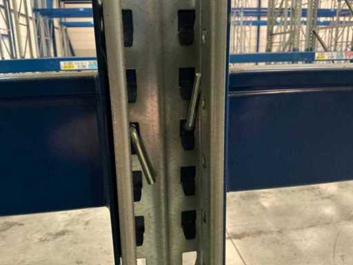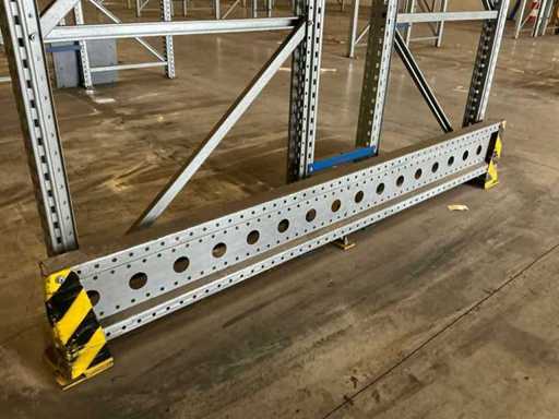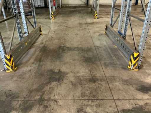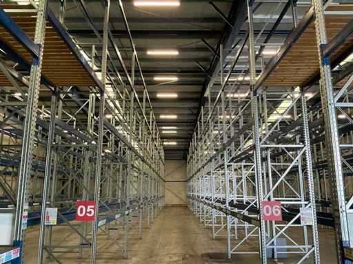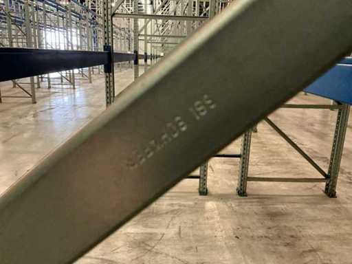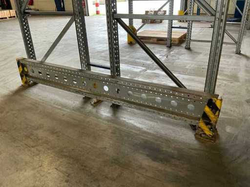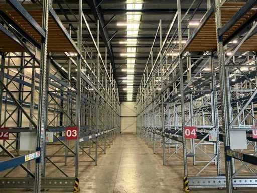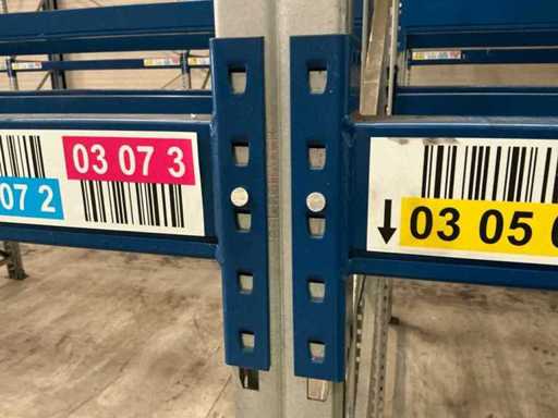 Stelling 1 t/m 7; 45 secties 370cm breed, 53 secties 270 breed; 16x staander hoogte 550cm; Vaklast sectie 370cm 3000kg, vaklast sectie 270cm 2750kg; 6x aanrijdbeveiliging, 2x hoekbescherming