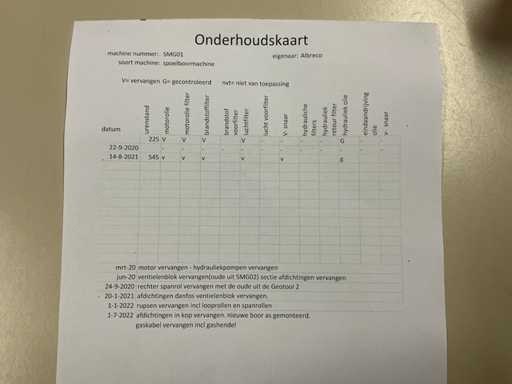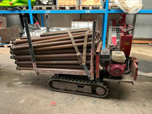 Voorzien van Hinowa HP 1100B rupsdumper met grondboren voorzien van 3 cilinder Kabuto motor, 2 jukken met boorstangen (circa 300m). Rupsdumper voorzien van Honda GX390 motor. Afgelezen urenstand grondboor 609 uur. Motor 2020 gereviseerd.