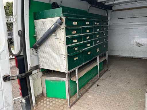 Elektrische ramen en spiegels, cruise control, radio, Airco, ASR, centrale vergrendeling, digitale tachograaf, parkeersensoren voor en achter, trekhaak met 13-polige stekker, Nato stekker, schuifdeur links en rechts, bedrijfswageninrichting
