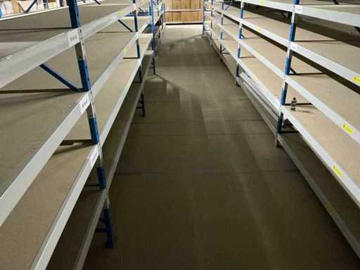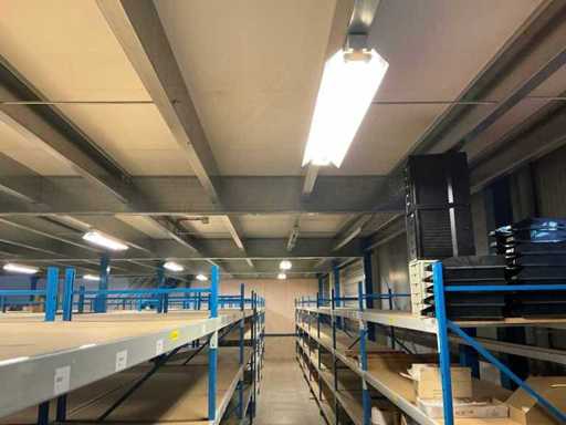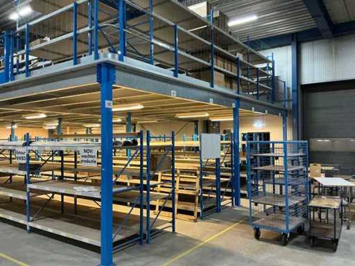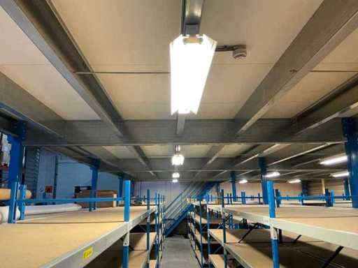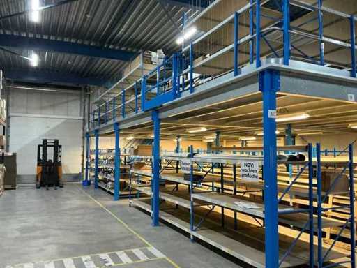 Maximale draaglast 400kg/m2, met verlichting, vaste trap. Stellingen op en onder de vloer niet inbegrepen.