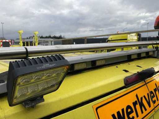 Voorzien van: elektrische ramen en spiegels, airco, achteruitrijcamera, armsteun, zwaailampen, imperial, werklampen, ladder achterop, laadbak 275x180x185 cm.