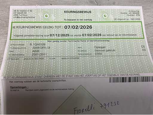 trekker oplegger - werkende koeling - dubbel wielen op achteras / trailer - start, rijdt, remt vlot - gebruikssporen maar geen structurele schade (zie foto’s) - geldige technische keuring tot 07/2/2026 (dd. 16/1/2025 op 424845) - Opgelet: laadklep opent niet en bediening koeling in de cabine gaat niet aan (wel werkend weg gezet)