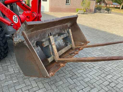 Voorzien van bak, Palletvork, Hydro snelwissel (Volvo aansluiting), 3e functie, Luchtgeveerde stoel, kachel. Machine kan geladen worden bij de koper, er is een laaddock aanwezig.