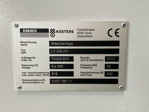 2012 Benninger / Kusters LT-TB-AR hogesnelheids continue (brede stof) voorwasinstallatie