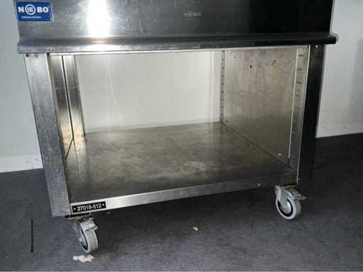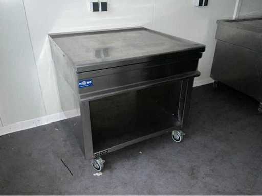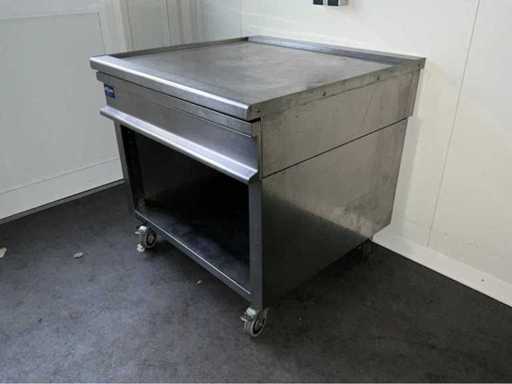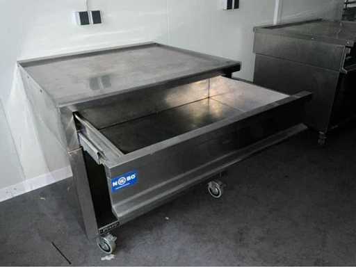 Roestvast staal; verrijdbaar; open onderkast; uitschuifbare lade; totaal afmeting 900x900x870 mm;