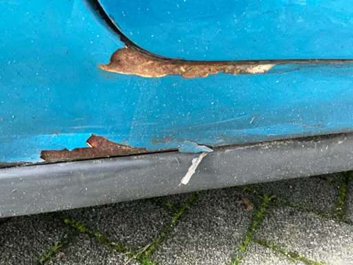 - Schade passagierskant deur, dorpel en achterscherm. Diverse krassen rondom. Schade achterbumper rechts.
