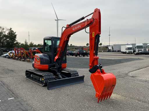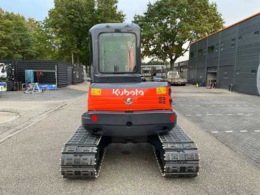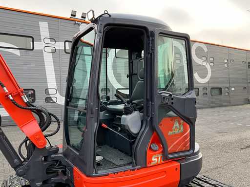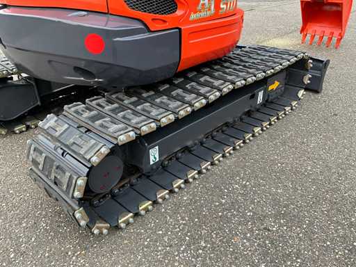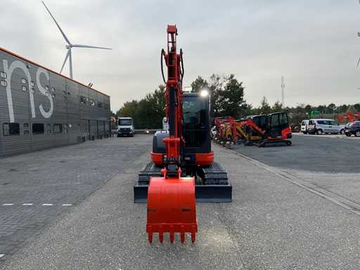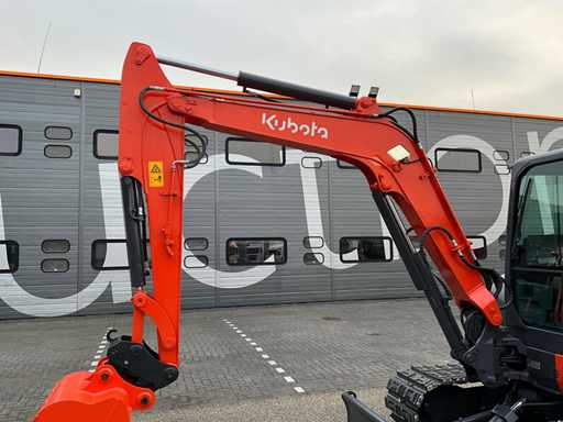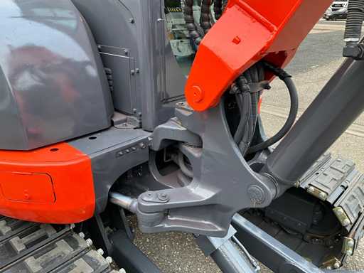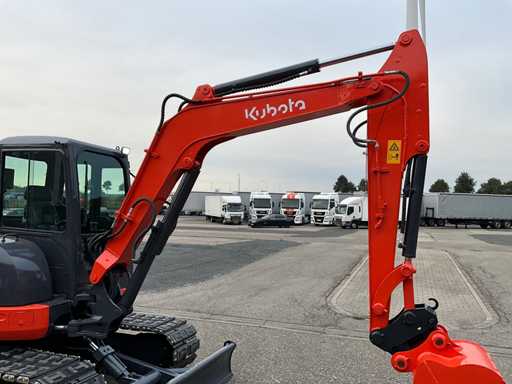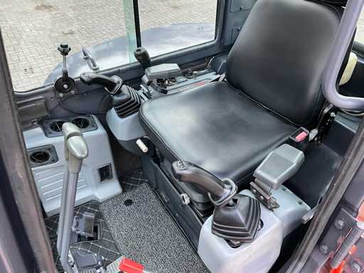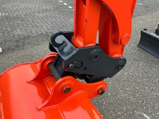 Tandenbak 700mm, mechanische snelwissel, extra hydraulische functie, zwenkgiek, schuifblad 2100mm, rubber pads op de stalen rupsen, Auto Idle omgebouwd naar handgas hendel
