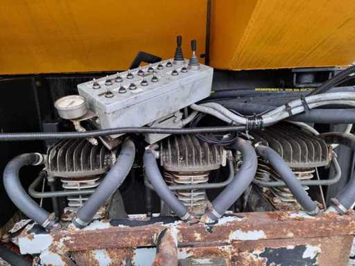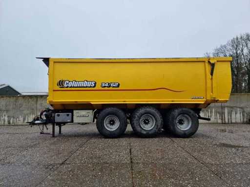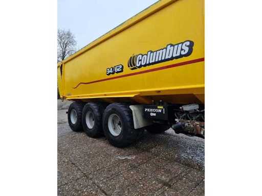 Voorzien van: automatisch bandendrukregelsysteem met 3 compressoren, 3-assige PEECON Columbus 34/62 landbouwkipper met kopbord (inhoud 62m³), achterover kippend, grootvolume 850/50R30.5 landbouwbanden, automatisch bandendrukregelsysteem (CTIS), zware dissel met hydrauliek en geschikt voor bulktransport zoals zand, mest, bieten en graan. meesturende assen 2x. Dubbele schuifcilinder met dubbele pomp. Trideksysteem, gescoupeerd (zink), automatische smeering, 80k 50, hydraulisch systeem,