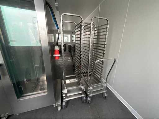 verrijdbaar; inclusief 2x inrijwagen 20x niveau GN 1/1 waarvan 1 met afneembare duwbeugel; tiptoets bediening; spoeldouche; kern temperatuurmeting; afmeting 1050x860x1850 mm; working condition
