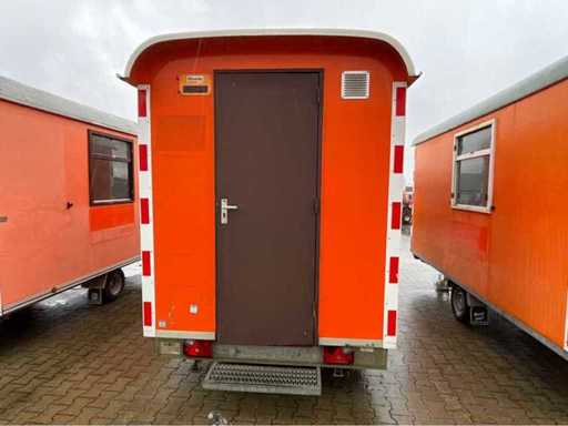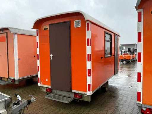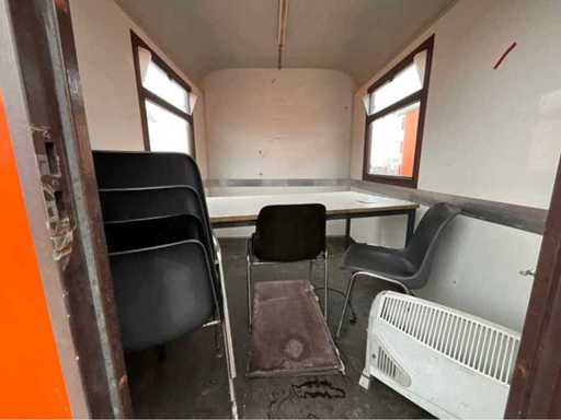 gegalvaniseerd staal onderstel; geremd; neuswiel; snelverkeer; kogelkoppeling en transportverlichting; 2x buitendeur; afzonderlijke opbergruimte; ramen voorzien van luik; tafel; stoelen; kachel; gebruiksporen; (de koper dient bij transport over de weg zelf te voorzien in een geldig kenteken; een 7 of 9 polige aansluitstekker of verloopstuk met kabel (verlengsnoer kan ter plaatse tegen betaling aangekocht worden); eventueel extra lichtbalk; Belgische kentekenpapieren; gelijkvormigheidsattest); (1-QDJ-547);