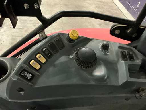 Voorzien van vierwielaandrijving, werkverlichting, zwaailicht, vangmuil, kieperknobbel, spatbordbediening, shuttel, radio en airco