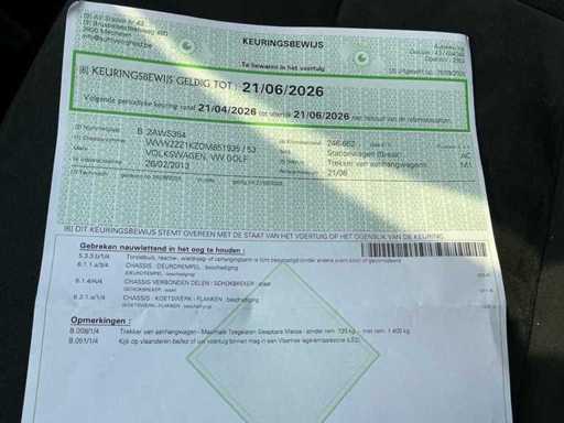 Volkswagen Golf uit 2013. Start, rijdt en remt. Schade rondom aan carrosserie (zie foto’s.