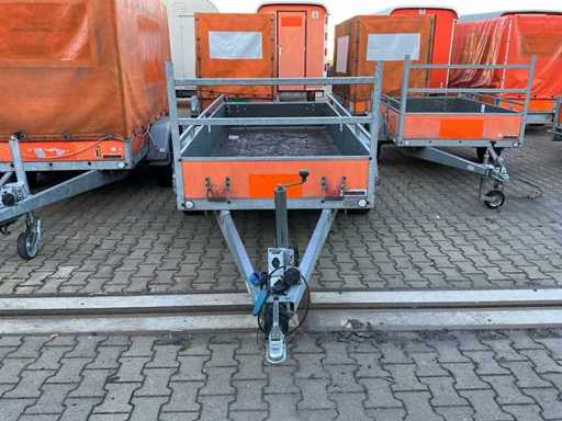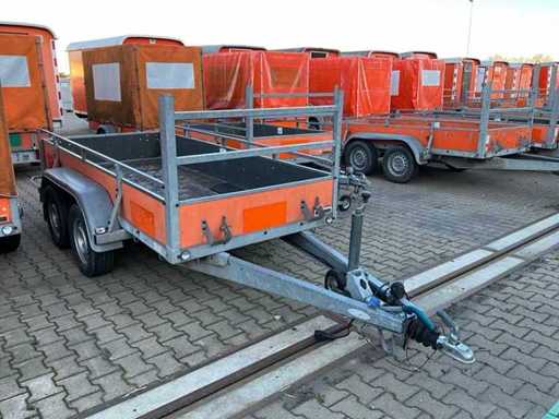 lengte 4500 mm; breedte 1800 mm; hoogte 1400 mm; gegalvaniseerd staal frame; neuswiel; geremd; (de koper dient bij transport over de weg zelf te voorzien in een geldig kenteken; een 7 of 9 polige aansluitstekker of verloopstuk met kabel (verlengsnoer kan ter plaatse tegen betaling aangekocht worden); eventueel extra lichtbalk; Duitse kentekenpapieren; gelijkvormigheidsattest; (VIE-SY591);
