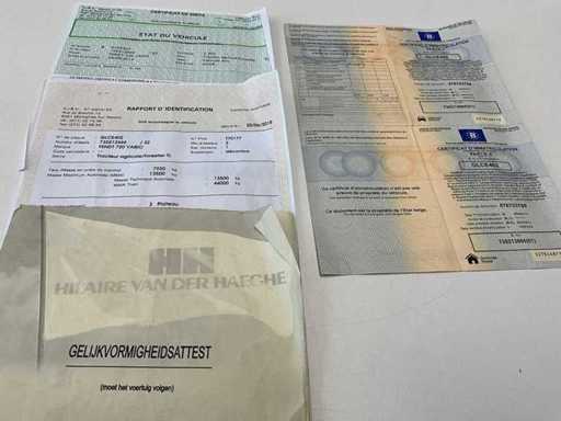 Voorzien van LS, hydraulische topstang achter, piton fix, luchtdruk en hydraulische rem, topstang voor, vooras en cabinevering, adbleau, Belgische boord documenten compleet, sleutel ok