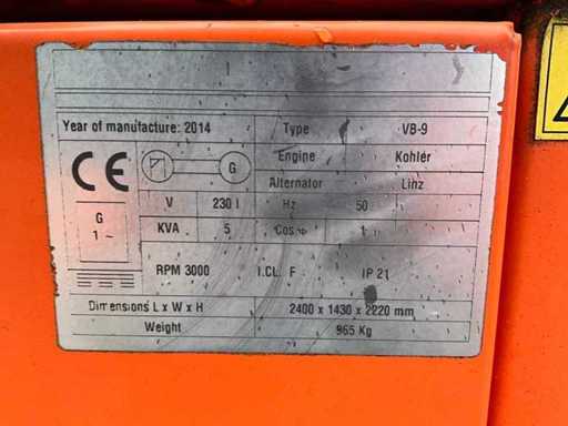 Kohler diesel motor; Linz alternator; 6x 230W LED lamp; 230 Volt aansluiting; 5 kVA; ingebouwde brandstoftank; hydraulische mast; maximale masthoogte circa 8 meter; afgelezen urenstand 1070 uur; lichtsensor; heftruck vorksleuven; 4x stelvoet; hijsoog; not working; (de koper dient bij transport over de weg zelf te voorzien in een geldig kenteken; een 13 polige aansluitstekker of verloopstuk met kabel (verlengsnoer kan ter plaatse tegen betaling aangekocht worden); eventueel extra lichtbalk); buitenlandse kentekenpapieren; zonder gelijkvormigheidsattest;