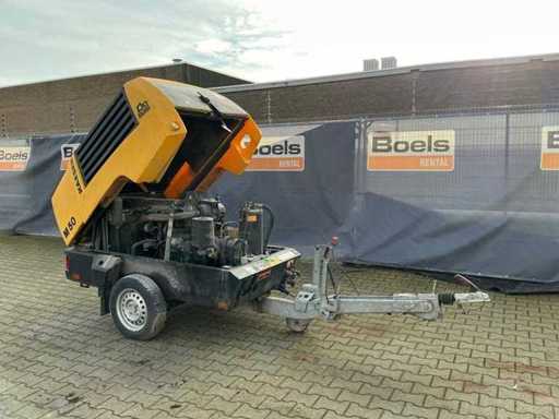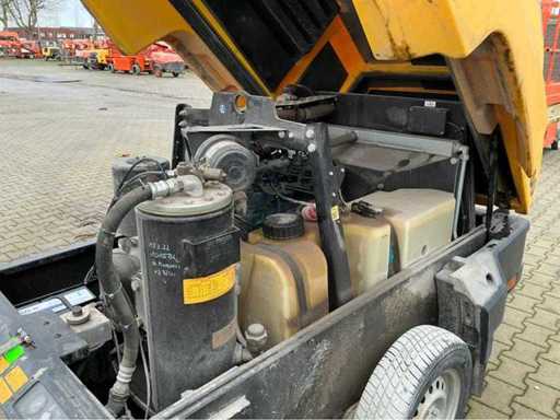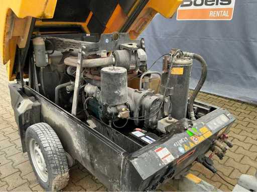 Lengte 3700 mm; breedte 1450 mm; hoogte 1400 mm; aangedreven door Kubota 4 cilinder dieselmotor; 32,5 kW; capaciteit 7 Bar; luchtstroom 5000 liter / minuut; afgelezen urenstand 1783 uur; opklapbare trekboom; oplooprem; neuswiel; kunststof kap beschadigd; working condition; (de koper dient bij transport over de weg zelf te voorzien in een geldig kenteken; een 7 of 9 polige aansluitstekker of verloopstuk met kabel (verlengsnoer kan ter plaatse tegen betaling aangekocht worden); eventueel extra lichtbalk); Duitse kentekenpapieren; gelijkvormigheidsattest; (M-VO174)