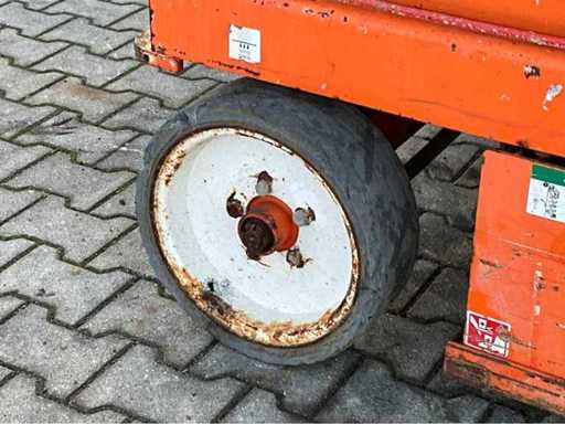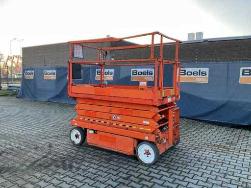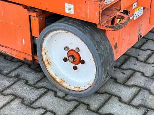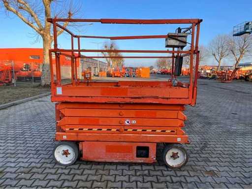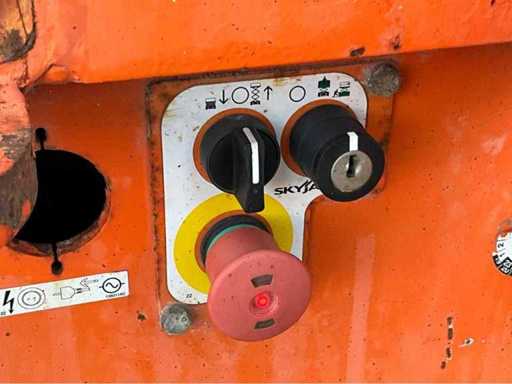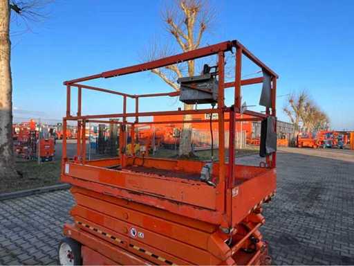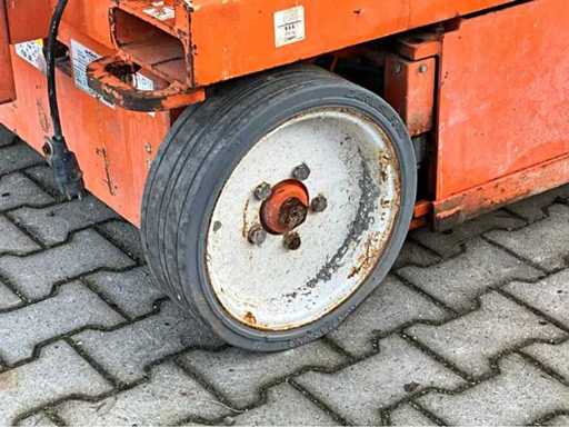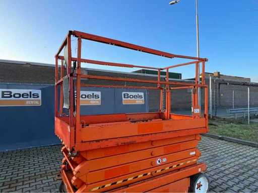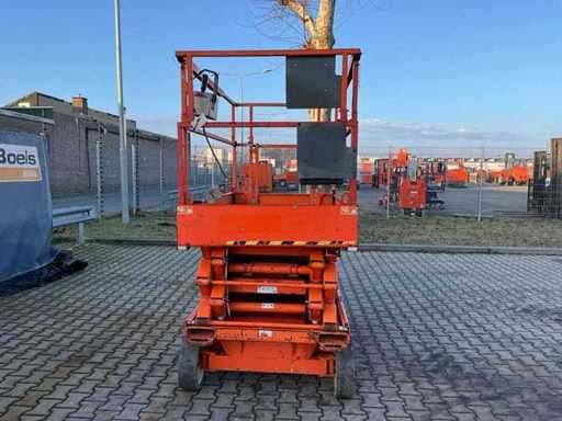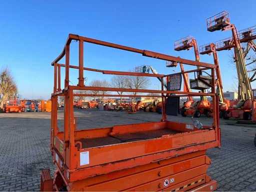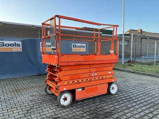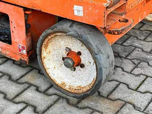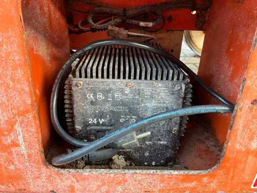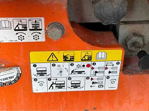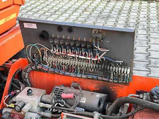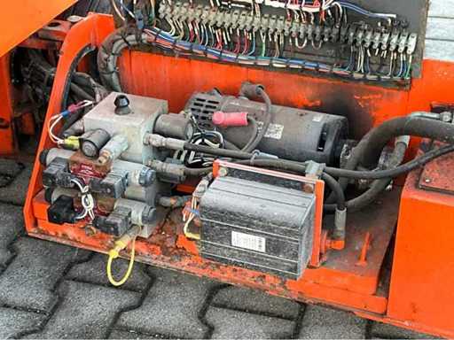 Platform vloerhoogte 7900 mm; uitschuifbaar platform afmeting circa 3150x1070 mm; interne acculader 230 Volt; kooibediening; 230 Volt stroom aansluiting platform; transporthoogte circa 1950 mm; working condition;