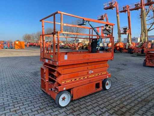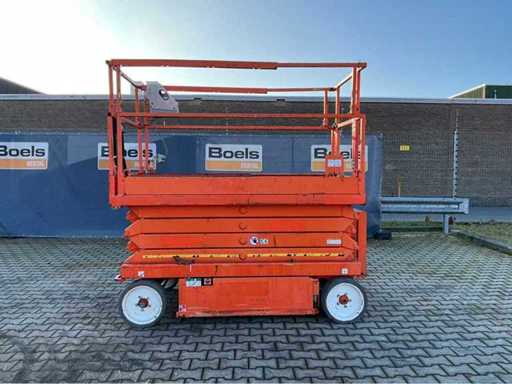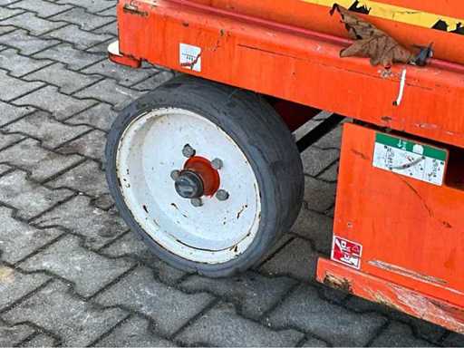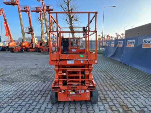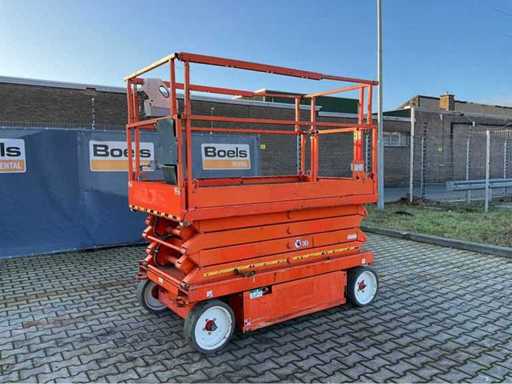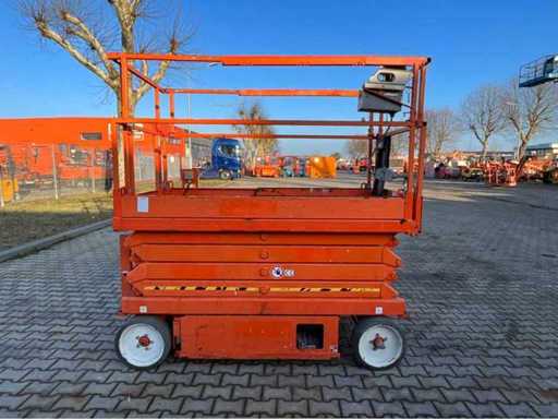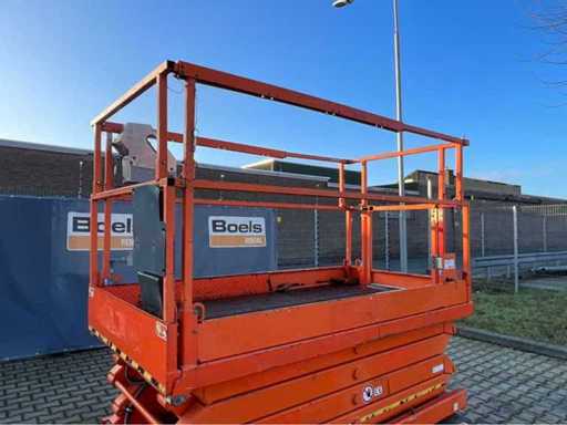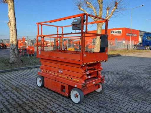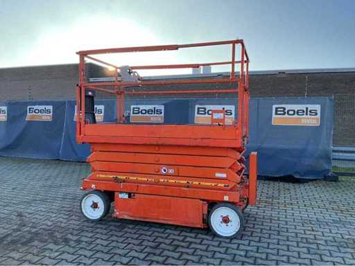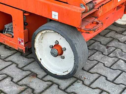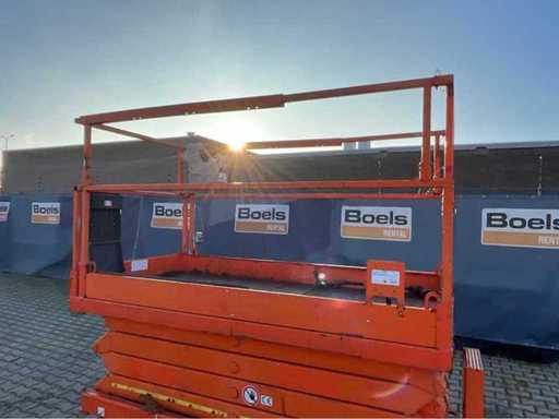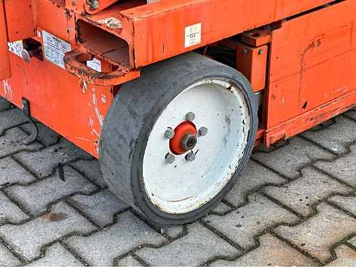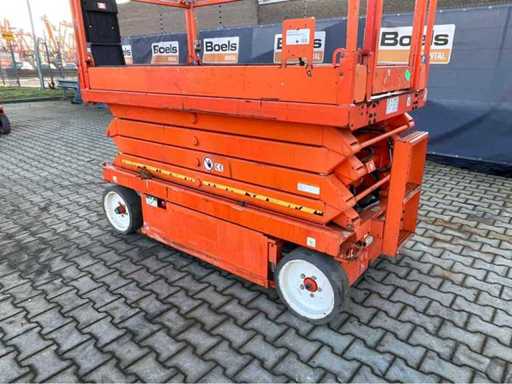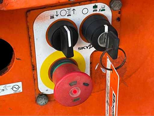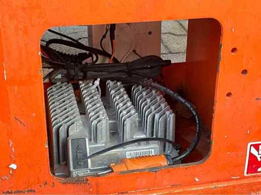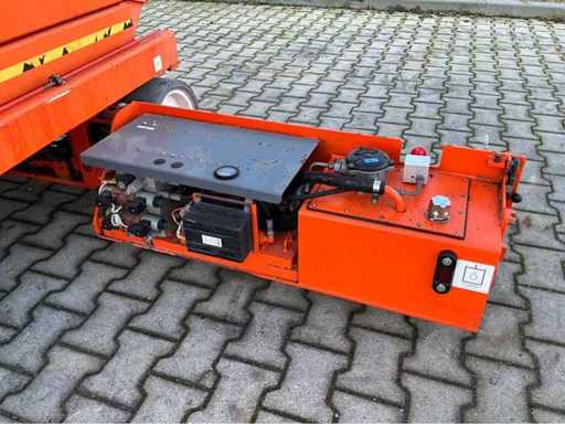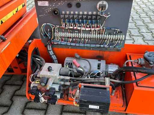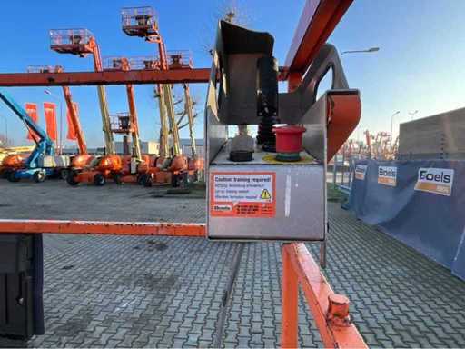 Platform vloerhoogte 7900 mm; uitschuifbaar platform afmeting circa 3150x1070 mm; interne acculader 230 Volt; kooibediening; 230 Volt stroom aansluiting platform; transporthoogte circa 1950 mm; working condition;