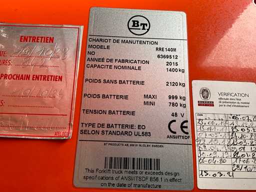 2015 BT RRE140M Reach truck
