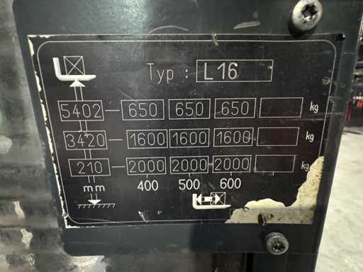 2015 Dienst +UVV 12/2026 Linde L16I EVO Triplex 531cm 1,600kg Pallettruck Ant Eerste slag 4,272 uur