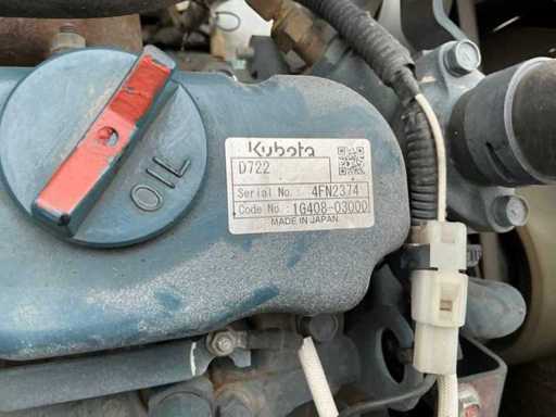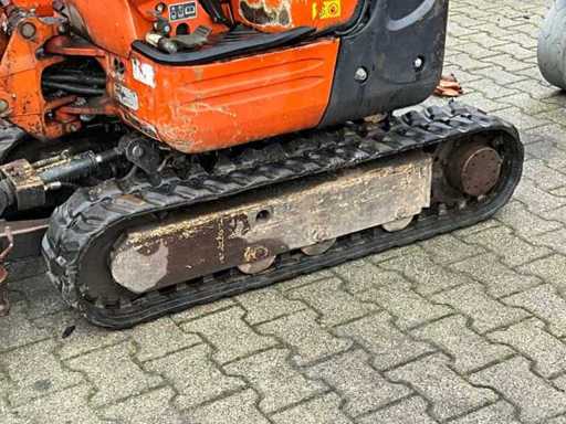 zonder cabine; canopy; neerklapbare rolbeugel; rubber rupsbanden; rupsen hydraulisch in breedte verstelbaar 750 - 990 mm; binnendraaier; maximale uitstorthoogte 2200 mm; extra hydraulische functie; dozerblad breedte 750 mm; working condition; Nederlandse kentekenpapieren; zonder gelijkvormigheidsattest; (57-69-GV)