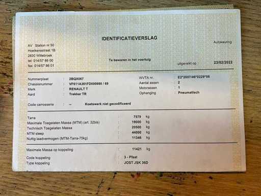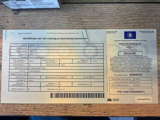 Voorzien van inschrijvingsbewijs deel 1 en 2, gelijkvormigheidsattest, keuringsbewijs en identificatieverslag.