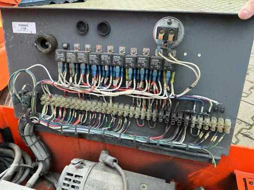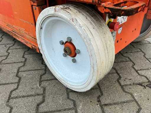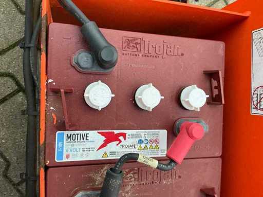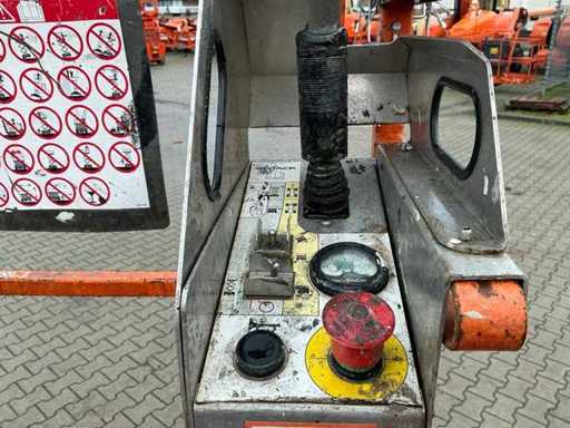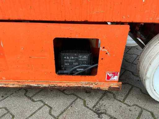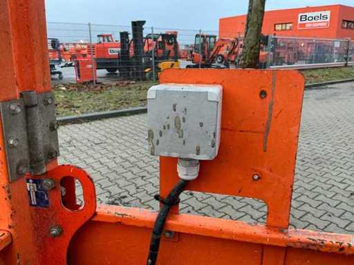 Platform vloerhoogte 6100 mm; uitschuifbaar platform afmeting circa 3020x710 mm; interne acculader 230 Volt; kooibediening; 230 Volt stroom aansluiting platform; transporthoogte circa 1750 mm; working condition;