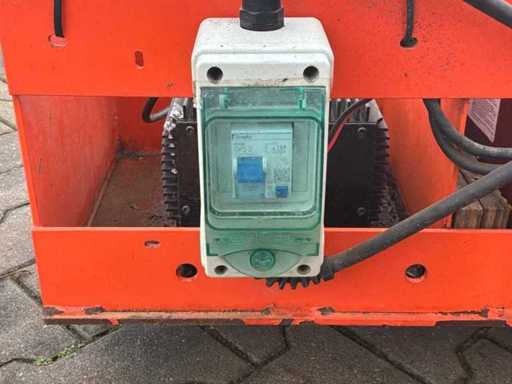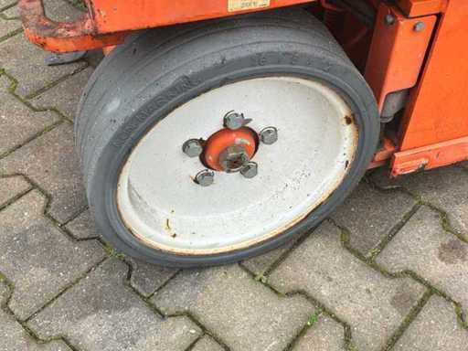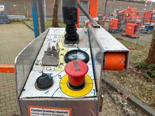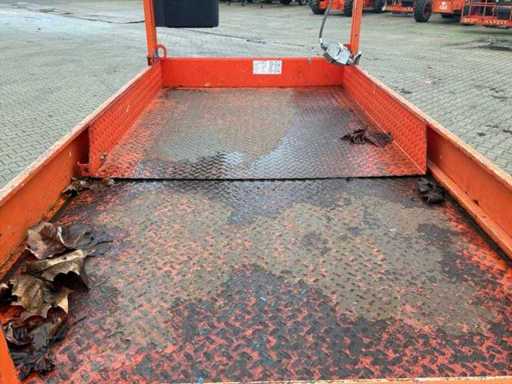 Platform vloerhoogte 7900 mm; uitschuifbaar platform afmeting circa 3150x1070 mm; interne acculader 230 Volt; kooibediening; 230 Volt stroom aansluiting platform; transporthoogte circa 1950 mm; working condition;