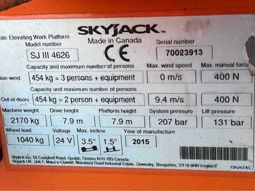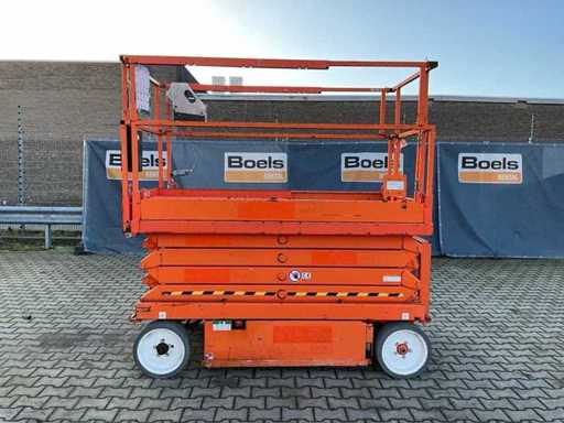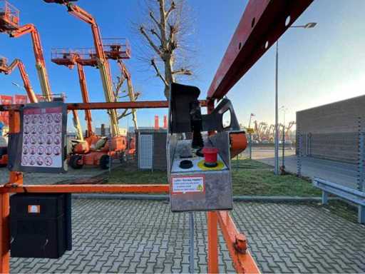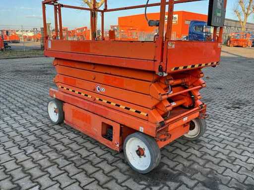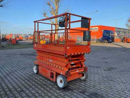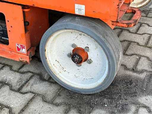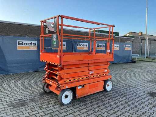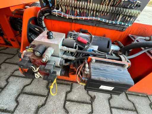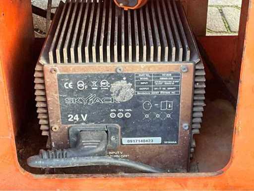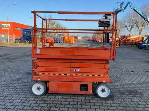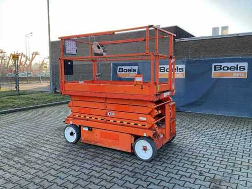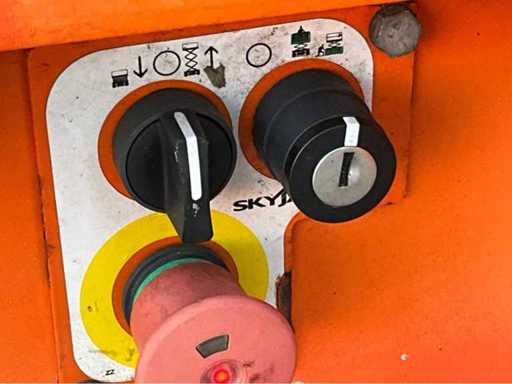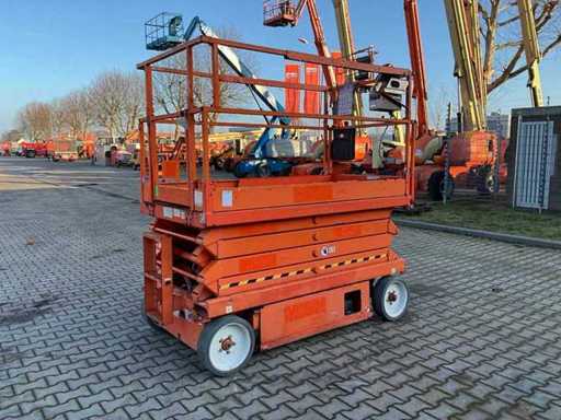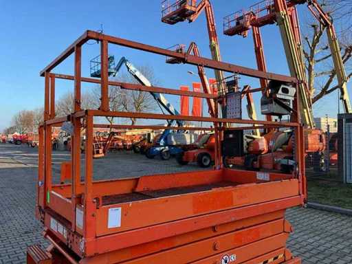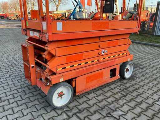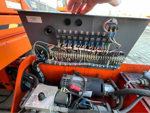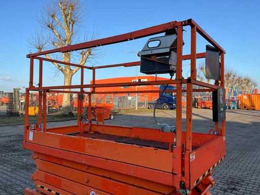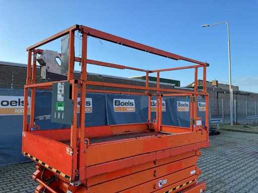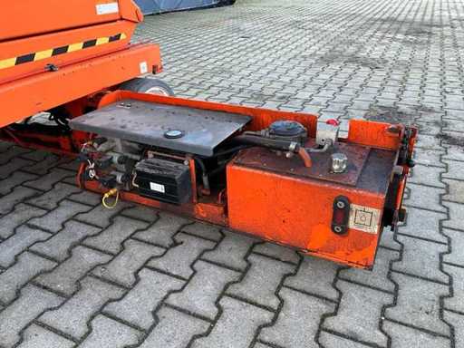 Platform vloerhoogte 7900 mm; uitschuifbaar platform afmeting circa 3150x1070 mm; interne acculader 230 Volt; kooibediening; transporthoogte circa 1950 mm; working condition;