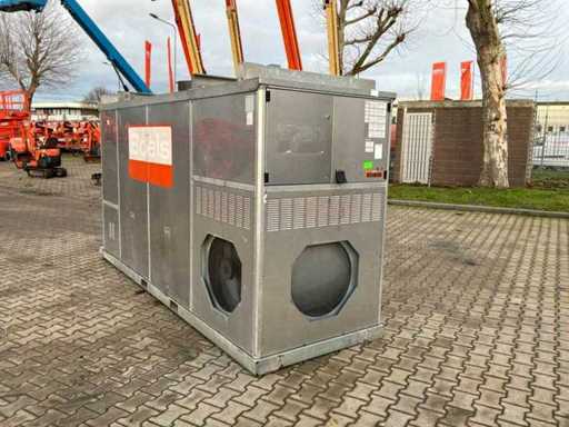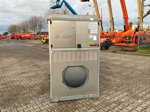 gegalvaniseerd staal onderstel; gegalvaniseerd staal hijsframe; heftruck vorksleuven; roestvast staal behuizing; diesel gestookt; aansluiting externe brandstoftank. verbruik circa 38 liter brandstof / uur; thermostaat; volumestroom 24000 m3 / uur; afgelezen urenstand 3067 uur; gebruiksporen; working condition;