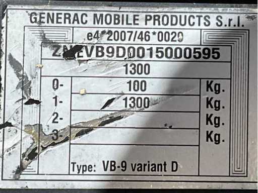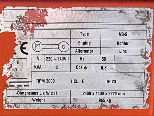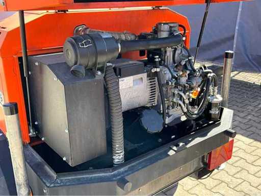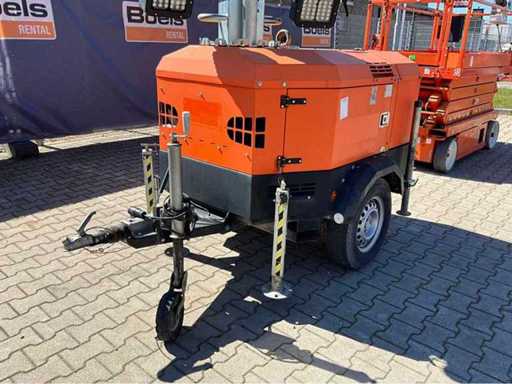 lengte 2400 mm; breedte 1450 mm; hoogte 2400 mm; Kohler diesel motor; Linz alternator; 6x240 Watt LED lamp; 230 Volt aansluiting; 5 kVA; ingebouwde brandstoftank; hydraulische mast; maximale masthoogte circa 8 meter; afgelezen urenstand 1963 uur; lichtsensor; heftruck vorksleuven; 4x stelvoet; hijsoog; working condition; (de koper dient bij transport over de weg zelf te voorzien in een geldig kenteken; een 7 of 9 polige aansluitstekker of verloopstuk met kabel (verlengsnoer kan ter plaatse tegen betaling aangekocht worden); eventueel extra lichtbalk); Duitse kentekenpapieren; gelijkvormigheidsattest; (B-FY8479)