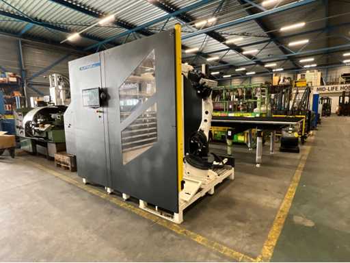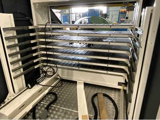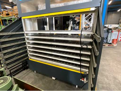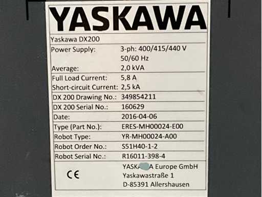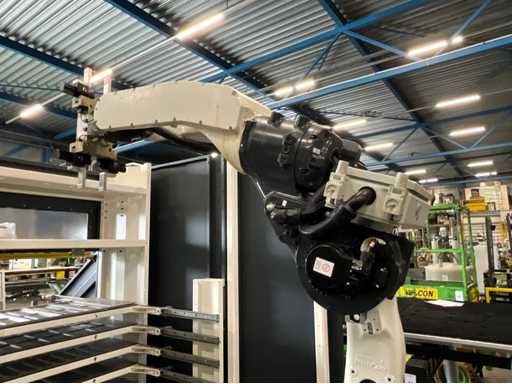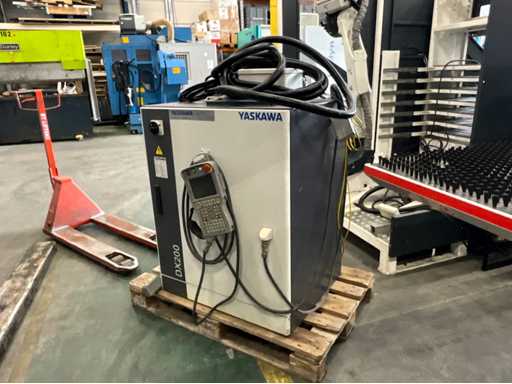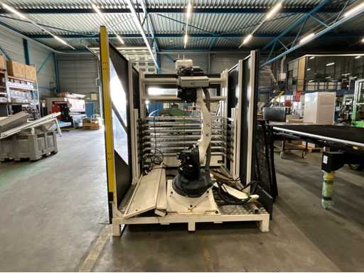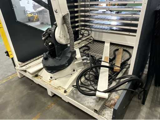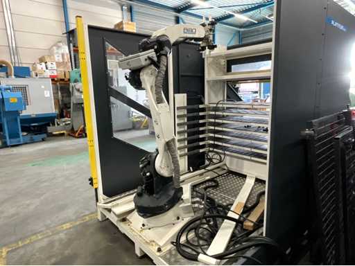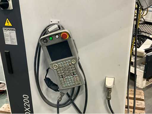 voorzien van 7 laden afmeting 1600x500 mm; voorzien van touch screen en ergonomische muis; inclusief Yaskawa Europe DX200 robot sturingsmodule; 400 Volt; 3 phase; 2 kVA; diverse veiligheidshekwerk; totale afmeting van de opstelling 3000x2000x2300 mm; afmeting sturingsmodule 1200x800x1200 mm;