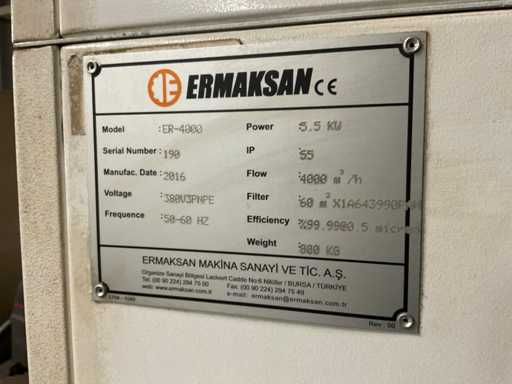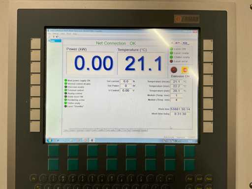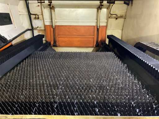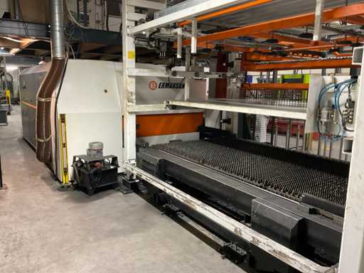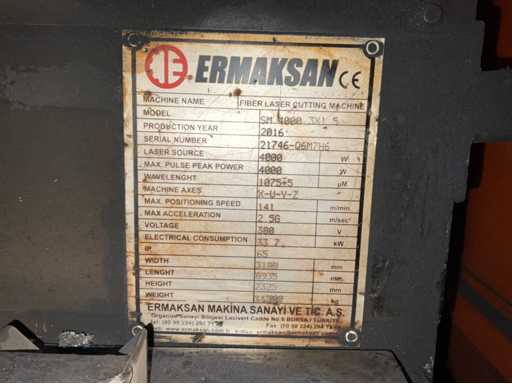 eerste eigenaar, Operating time: 53600 h, Emission time: 9427 h, snijsnelheid: 141 m/sec, voorzien van: testrapport (volledige 4kW aantoonbaar), IPG YLS-4000-CUT laserbron, Ermaksan ER-4000 afzuigfilter-unit (4000m3/uur), IPG chiller/koelunit (bouwjaar 2019), touchscreen bedieningspaneel achterzijde, snijafval transport-afvoerband, 3000-1500 werkbereik, wisseltafel, digitale documentatie (gebruiksaanwijzing en installatiehandleiding, onderhoudshistorie),