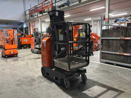 verrijdbaar; staal / aluminium; maximum platform vloerhoogte 5940 mm; kooibediening; 230 Volt stroom aansluiting platform; uitschuifbaar plateau afmeting 1200x650 mm; ingebouwde acculader; 24 Volt; 230 Volt; working condition;