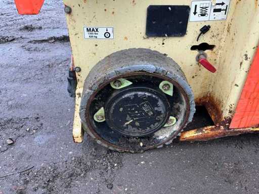 Ingebouwde lader, 24V accupakket, uitschuifbaar platform 700mm, max hefhoogte 7800mm, max hefvermogen 230kg
