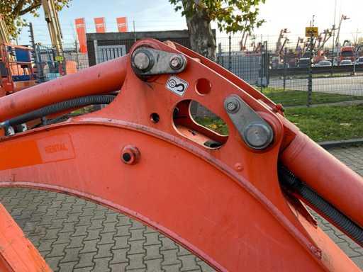 Gesloten cabine; rubber rupsbanden; rupsen hydraulisch in breedte verstelbaar 990 - 1240 mm; maximale uitstorthoogte 2250 mm; extra hydraulische functie; snelwissel; dozerblad breedte 1230 mm; working condition;