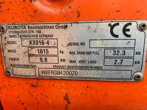 2016 Kubota KX016-4G Minigraafmachine