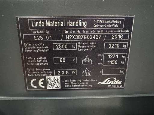 2016 Service + UVV 12/2026 Linde E25 2.500kg 4x banden nieuwe elektrische heftruck 10.007 uur