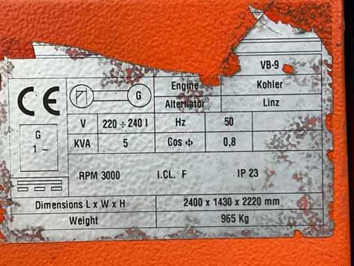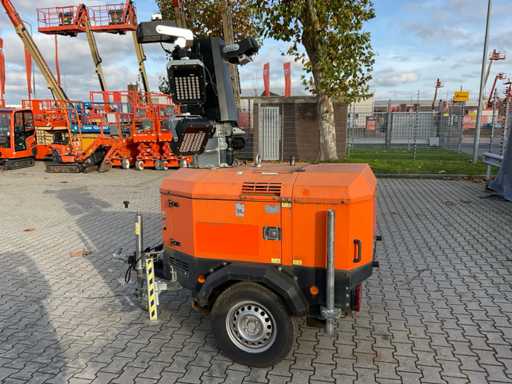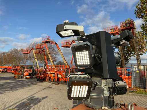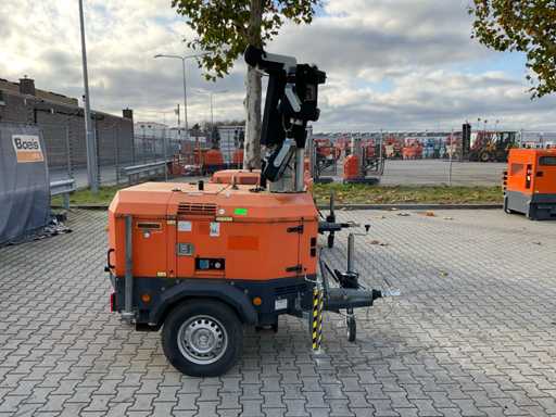 lengte 2400 mm; breedte 1450 mm; hoogte 2250 mm; Kohler diesel motor; Linz alternator; 6x240 Watt LED lampen; 230 Volt; maximale masthoogte 8 meter; afgelezen urenstand 1039 uren; lichtsensor; tijdschakelaar; heftruck vorksleuven; 4x stabilisator stempels; ingebouwde brandstoftank; tankinhoud 170 liter; working condition; (de koper dient bij transport over de weg zelf te voorzien in een geldig kenteken; een 7 of 9 polige aansluitstekker of verloopstuk met kabel (verlengsnoer kan ter plaatse tegen betaling aangekocht worden); eventueel extra lichtbalk); Duitse kentekenpapieren; gelijkvormigheidsattest; (VIE-NY409)