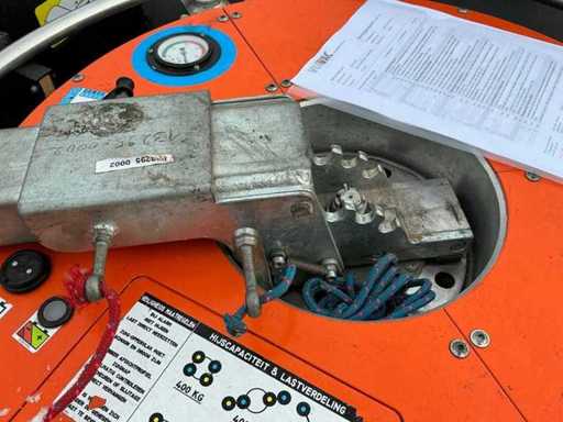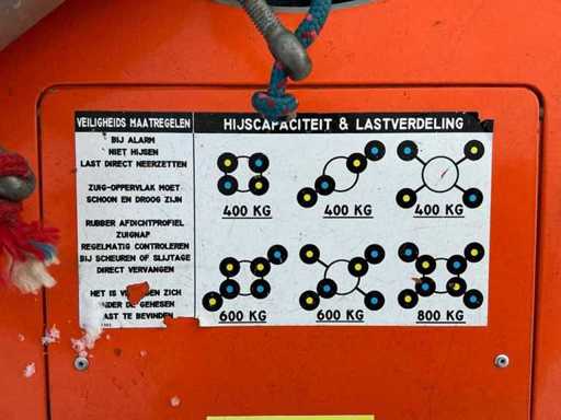 Voorzien van 4 vaste en 4 demonteerbare zuignappen Ø 400 mm; kantelbaar; inclusief kunststof palletbox; working condition;