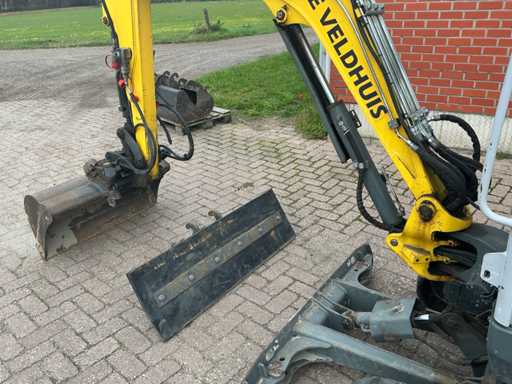 Voorzien van 5 diverse graafbakken 100, 120, 40, 2x20cm breed, rubberschuif 125cm, wortelmes. Voorzien van kantelbare cabine. Hydraulische CW05 snelwissel, kantelstuk, uitschuifbaar onderstel, VDS systeem, anti diefstal systeem met GPS (Wacker Neuson), startonderbreker. Led werkverlichting en led zwaailamp