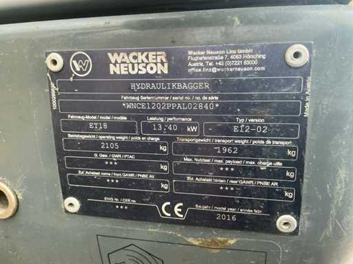 2016 Wacker Neuson ET18 /DS Minigraafmachine