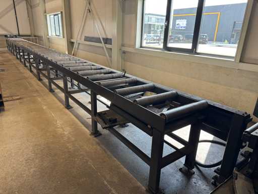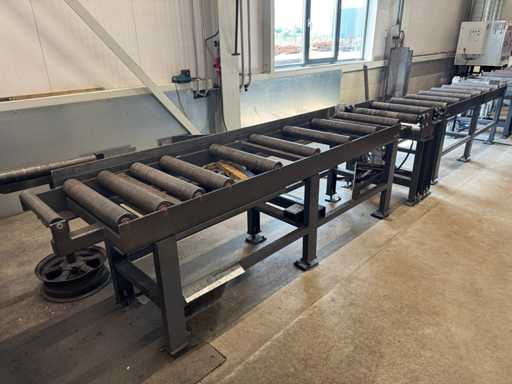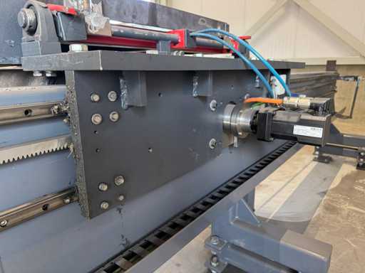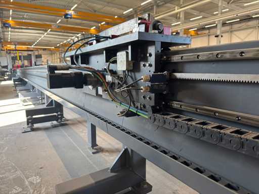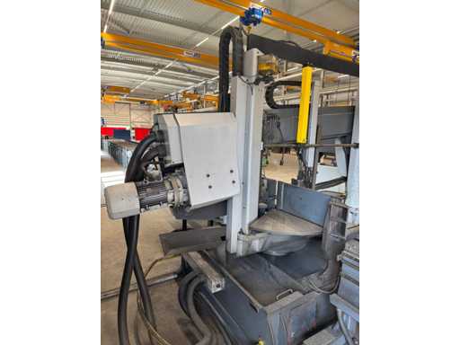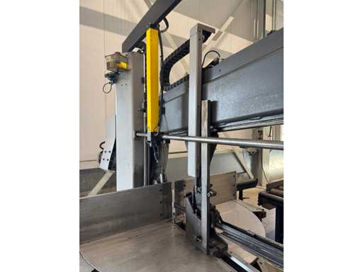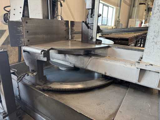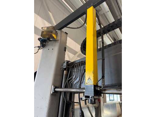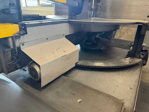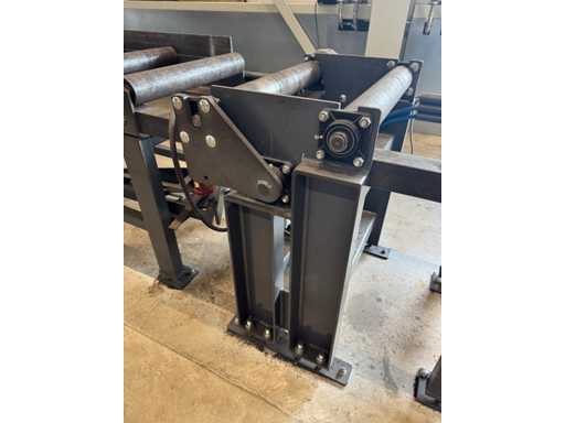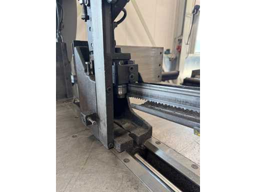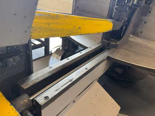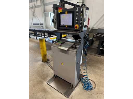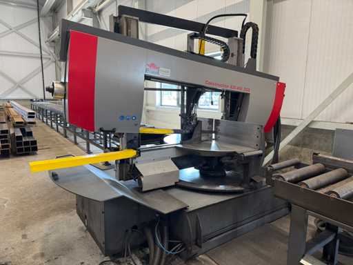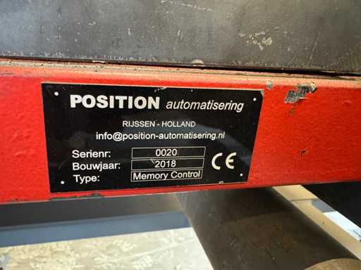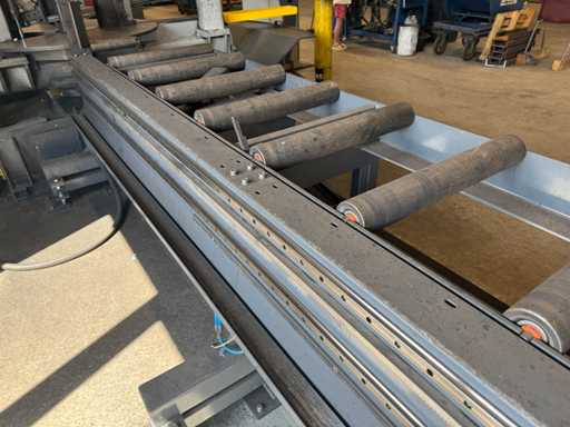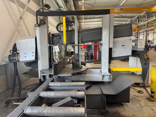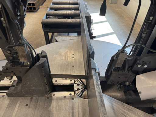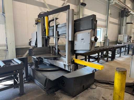 zaagsnelheid: 20-120 m/min; verstek -60° tot 60°; bandzaagmachine voorzien van: hydraulische neerdrukker, automatische smering, tegendruksensor, zaagsnede laser, "Datalogic" optische inloop beveiliging; compleet met (1) "Position" CNC gestuurde materiaal aanvoerrollenbaan met aanslag/-voerwagen, type: Memory Control, bouwjaar: 2018 (rollenbaan 2022) met inloopbeveiliging, afm. ca. 16000x600 mm en (2) aangedreven afvoerrollenbaan met 2x hydraulische 'lift' unit, afm. ca. 7000x600 mm; gehele combinatie aangestuurd door "Position" CNC besturing, type: automatisering.