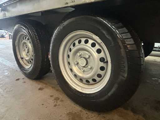 Hapert plateau aanhangwagen, 2700 kg uitvoering, bakmaat 410x205, wielen netjes, verlichting werkend (13 polige stekker), bouwjaar 2017.