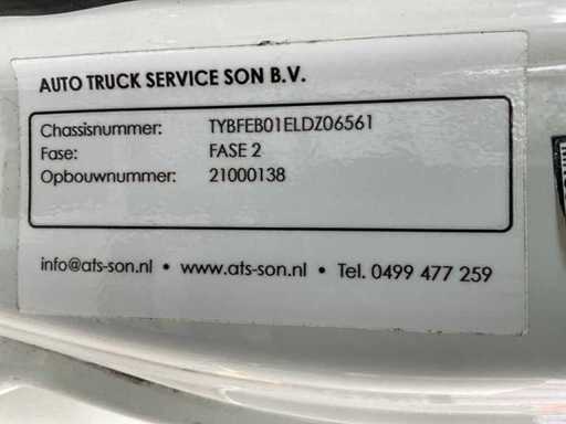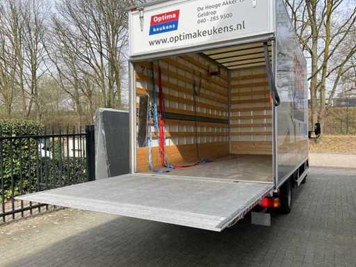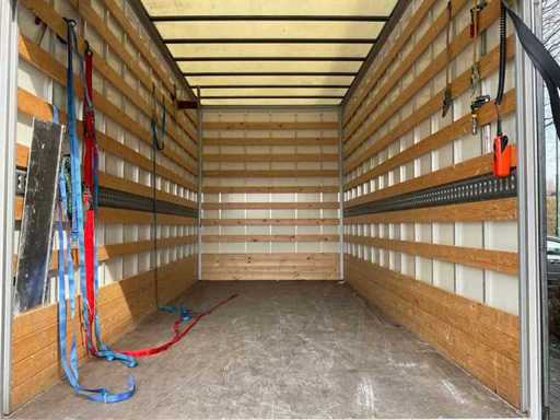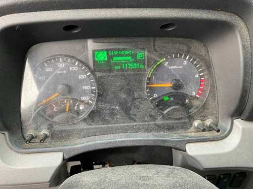 Voorzien van: airco, radio, elektrische ramen, verstelbaar stuur, spoiler, ad blue installatie, laadbak met d’Hollandia laadklep 1000 kg, dubbele achterwielen. Afmetingen laadbak 470x205x240 cm, afmetingen laadklep 183x210 cm.