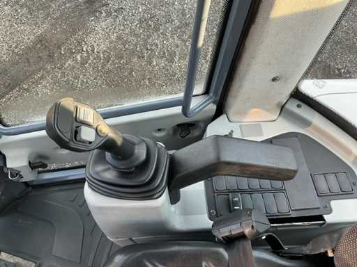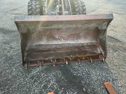 Voorzien van: hydraulische snelwissel, pallet vorken 1050mm, 3 in een bak 1850mm, pendelende achteras kantelhoek van 10°, Parallelle-Kinematiek, multifunctionele joystick, knikbesturing met een stuurhoek van 40º, hydrostatische aandrijving, werkhydrauliek (3. functies), permanente vierwielaandrijving, Smart Control, in hoogte en hoek verstelbare stuurkolom, stoel met hydr. vering, positie- en gewichtsinstelling, proprtionele bediening van de hydr. functies, rem/inch-pedaal, schuifraam rechts, totale lengte 5060 mm, wielbasis 2100 mm, totale hoogte 2640 mm, bodemvrijheid 435 mm, breedte (buitenkant band) 1780 mm, breedte (buitenkant bak) 1850 mm, storthoogte 2550 mm.